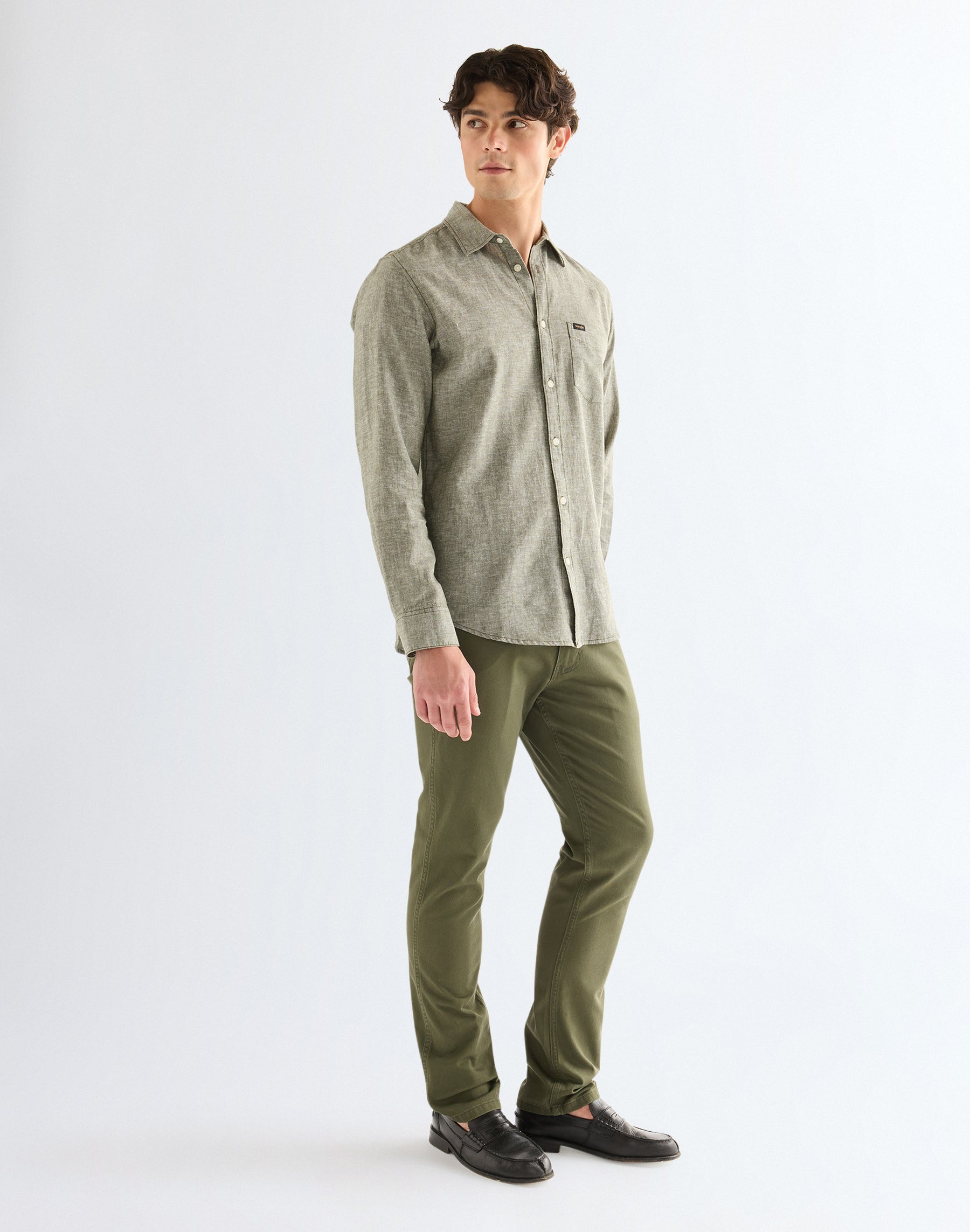 Mit ihrer gelungenen Mischung aus Komfort und Stil ist unsere grüne Greensboro Hose im Five-Pocket-Design eine lässige und gleichzeitig schicke Alternative zu deiner Wrangler-Lieblingsjeans. Ob im Job oder am Wochenende – das leichte, bequeme Material macht sie zu einem vielseitigen Essential, das das ganze Jahr über funktioniert. Das gerade Bein sieht mit Umschlag genauso gut aus wie ohne und lässt sich je nach Anlass entspannt oder etwas eleganter stylen. Die Hose sitzt mittelhoch knapp unter der Taille, hat eine reguläre Passform am Oberschenkel und verläuft gerade bis zum Saum. Details wie der Reißverschluss mit Knopf, sieben Gürtelschlaufen, die charakteristischen „W“-Nähte und unser aktualisierter Leder-Patch auf der Gesäßtasche runden den Look ab. Gefertigt aus weichem, besonders leichtem Baumwolltwill bietet sie dir den ganzen Tag über angenehmen Tragekomfort.